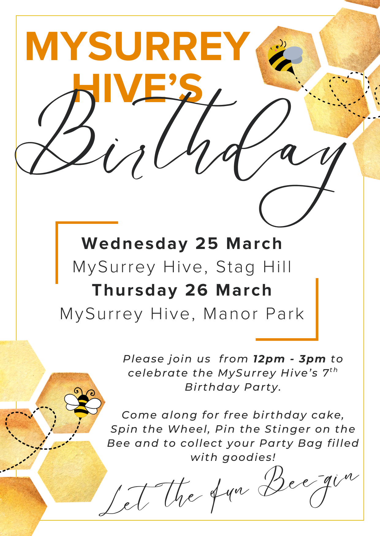 Join us to celebrate MySurrey Hive's 7th birthday. Come along for free birthday cake, games and free party bags!